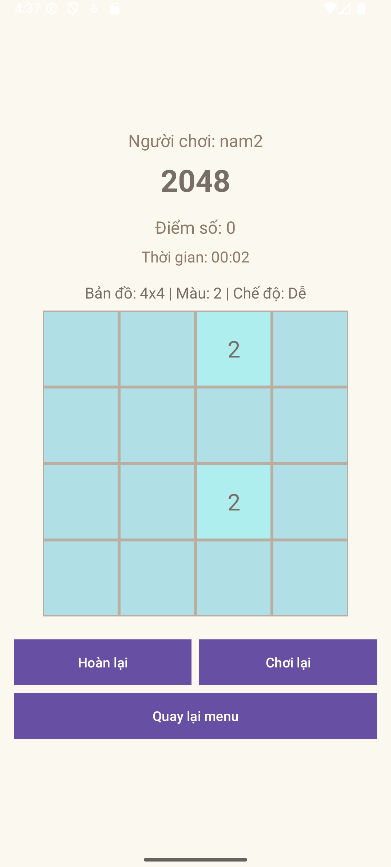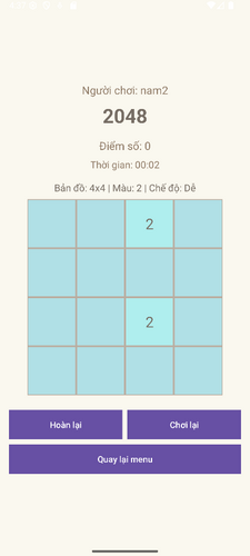 Bắt đầu: thường có 2 ô ngẫu nhiên xuất hiện (giá trị 2 hoặc 4).