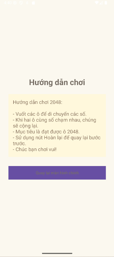 Điểm: mỗi lần ghép, bạn cộng vào điểm số giá trị của ô mới (ghép 4+4 → +8 điểm).